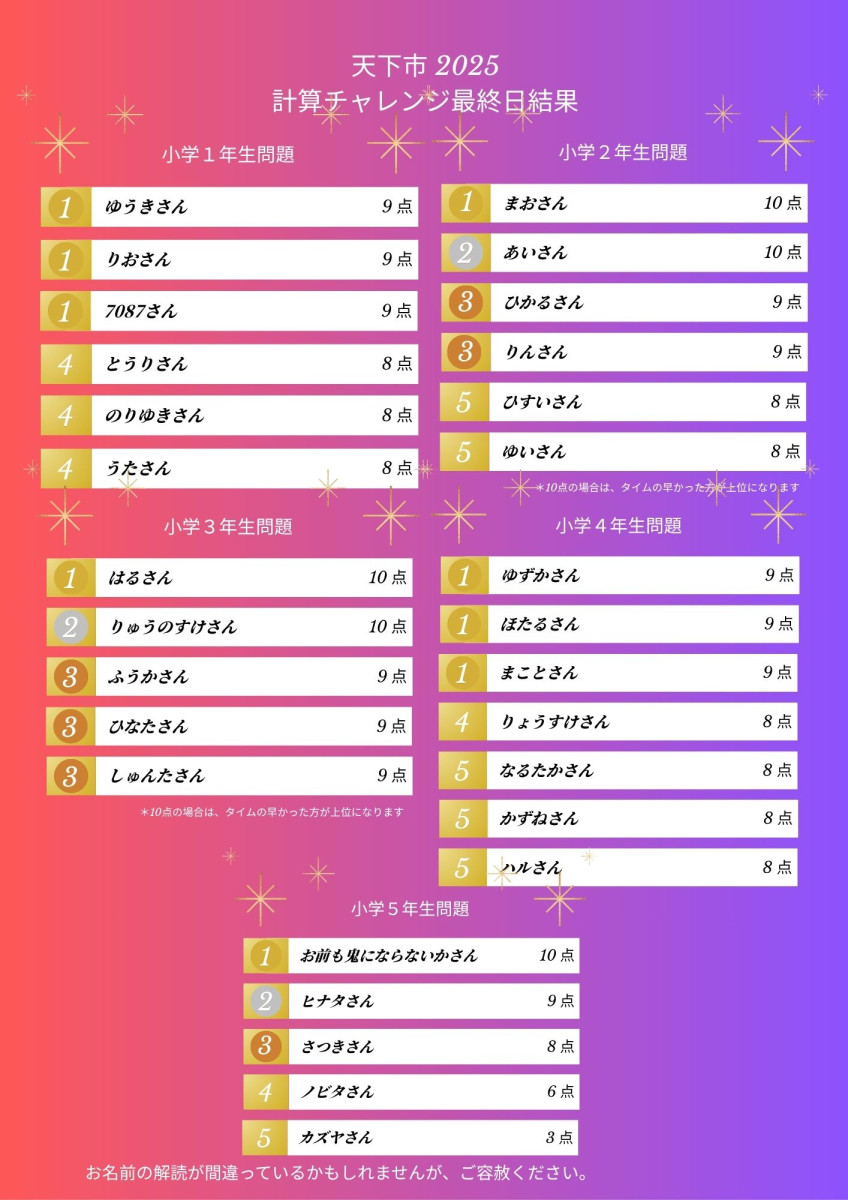 机に向かって一生懸命問題を解く子供たちを見ることができて、感動しました。また来年もチャレンジをお待ちしております!